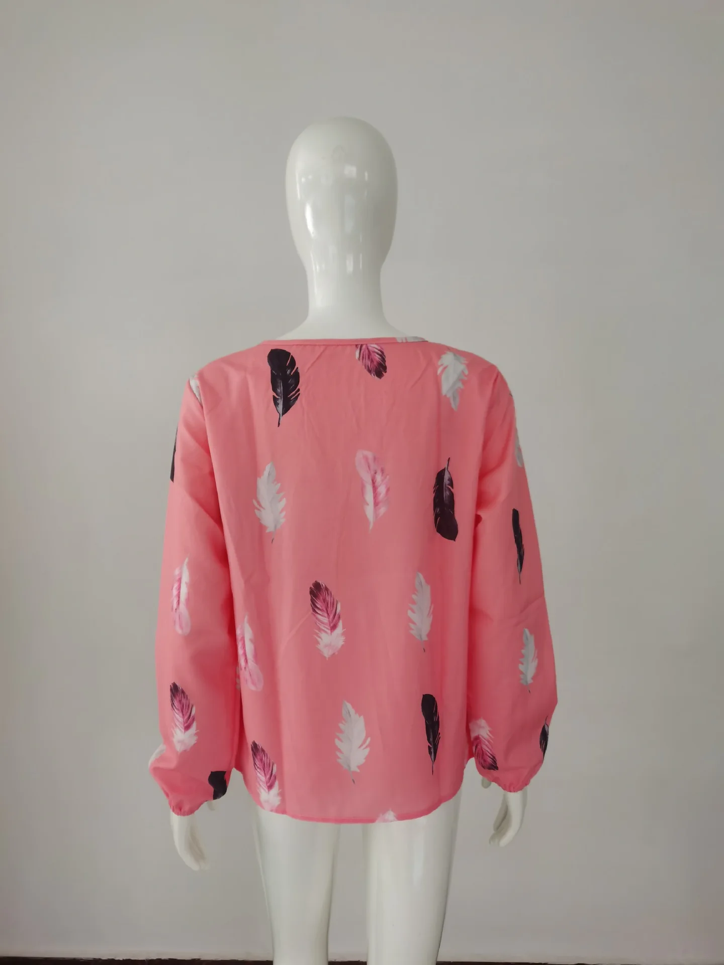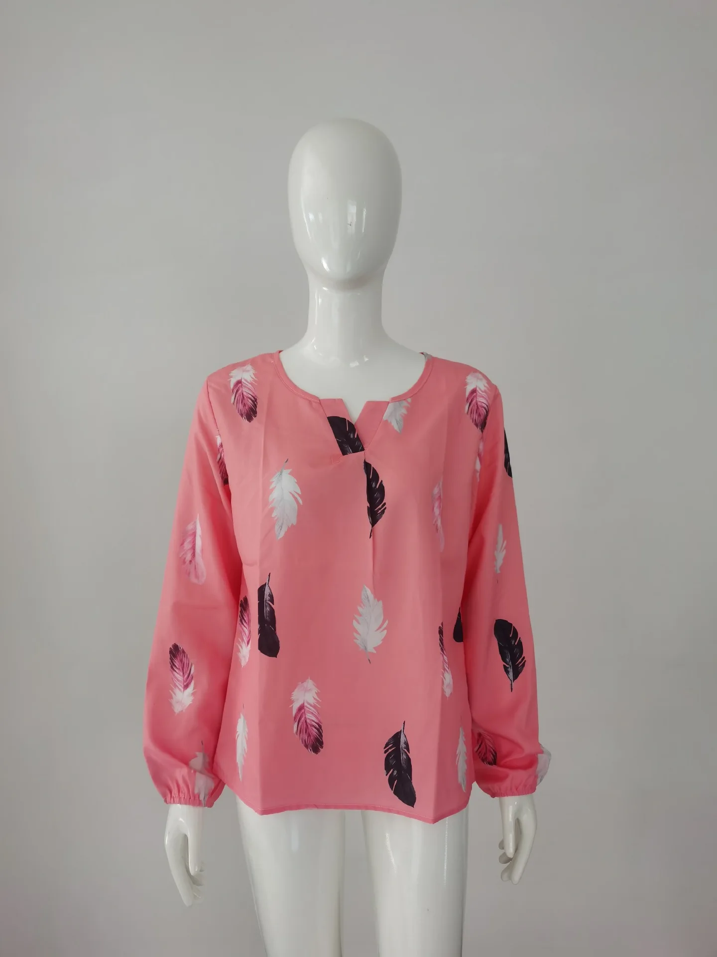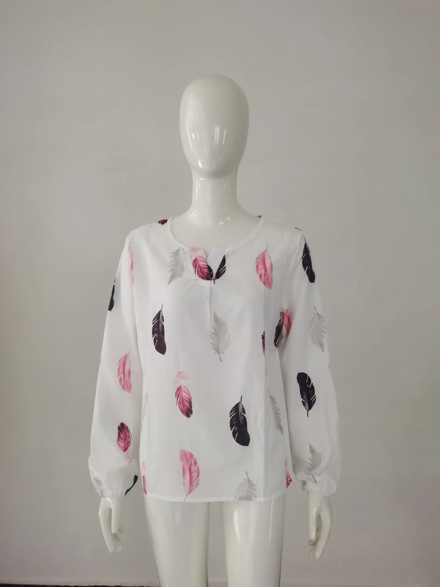 Temperament Elegant V-neck Feather Painting Printing Long Sleeve Loose T-shirt Flare Sleeve Women's Tops